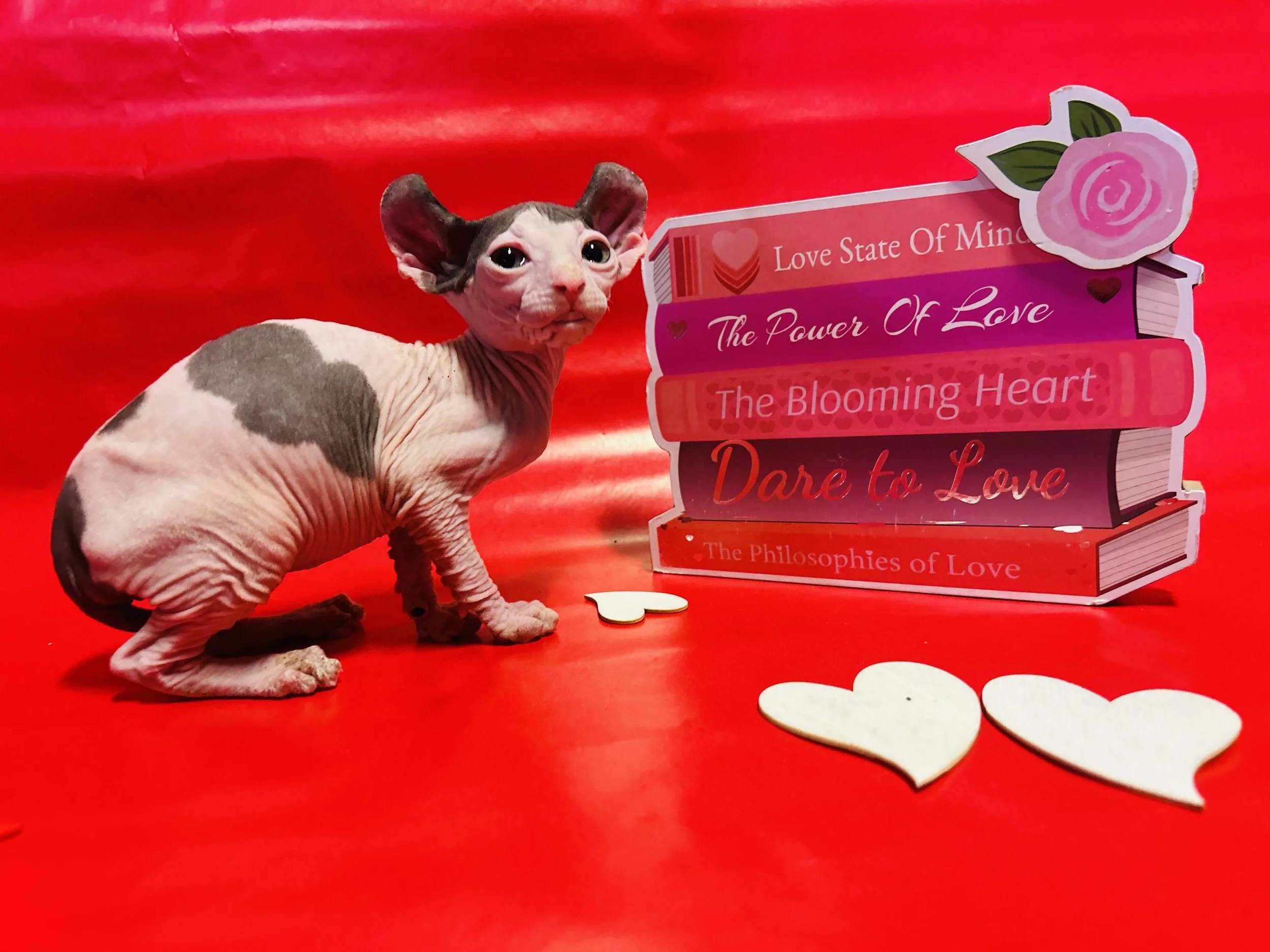 She has curly ears crossed with the sphynx for the hypoallergenic gene with a lighter coat